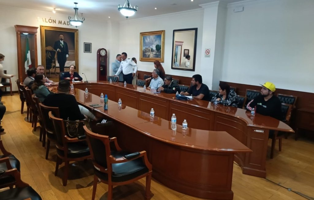 La alcaldesa Angélica Moya Marín y los titulares de las Direcciones Generales de Administración, Gabriel García; Gobierno, Sergio Mancilla; Seguridad, Francisco Rosas, y Jurídica y Consultiva, Susana Muñoz, así como el titular de la Unidad de Asuntos Internos, Óscar Antonio del Toro, recibieron este miércoles en el Salón Madero del palacio municipal a los familiares de las víctimas.