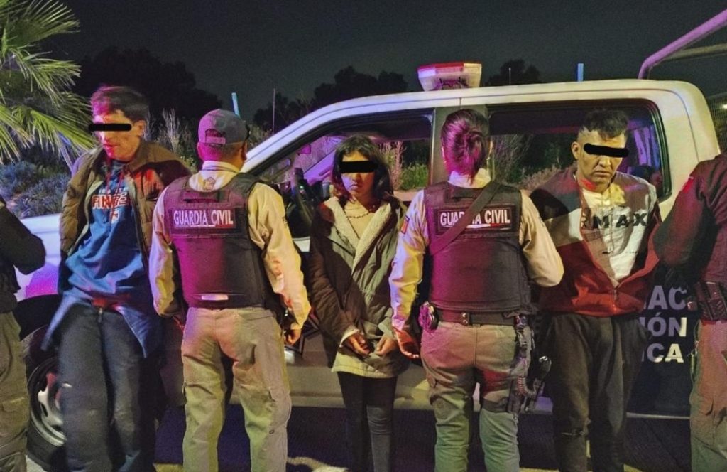 En el lugar se detuvieron a Roberto “N”, Francisco “N” y Mariana “N” de 33, 29 y 21 años de edad respectivamente; quienes fueron trasladados a las instalaciones de la Fiscalía General de Justicia del Estado de México en donde se determinará su situación jurídica.