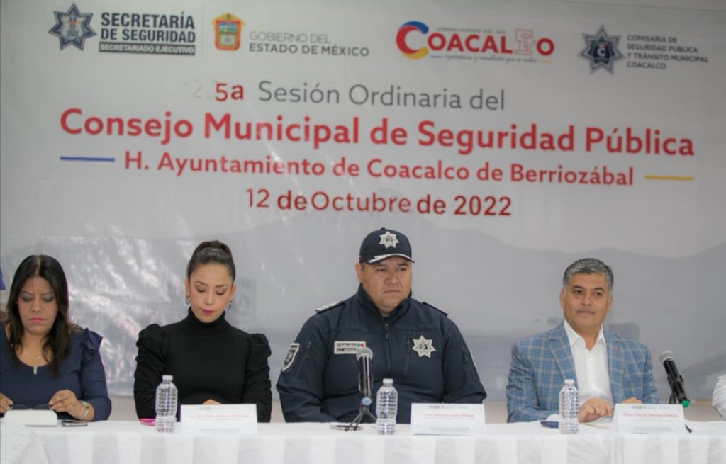 Llevan a cabo en Coacalco la Quinta Sesión del Consejo de Seguridad Pública en la que participaron autoridades del Gobierno de Coacalco, del Estado de México y representantes vecinales, para dar seguimiento a los acuerdos y generar conjuntamente estrategias de seguridad para el bienestar de los coacalquenses.