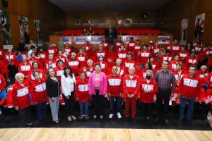 “Agradecerles que sean parte de la familia DIF y decirles que nosotros estamos trabajando duro para que ustedes tengan muchos beneficios, como paseos, estos pants y tenis, viene el festejo del adulto mayor y programas como las caravanas de salud”, afirmó la Presidenta Honoraria.