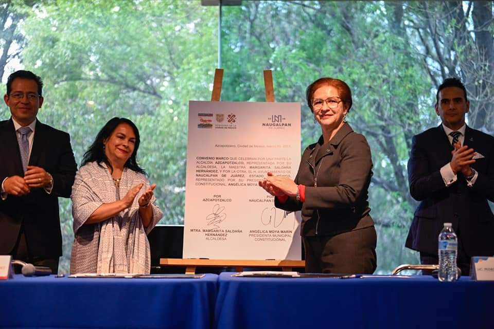 Naucalpan, Méx.-Acompañada de la alcaldesa de Azcapotzalco, Margarita Saldaña Hernández, la edil de Naucalpan indicó que con este acuerdo se concretarán acciones en los seis kilómetros de colindancia entre ambas demarcaciones en materia de movilidad, protección civil, transporte; desarrollo económico, cultural y recreativo; equidad de género, prevención de la violencia hacia las mujeres, seguridad, gestión ambiental, entre otras.