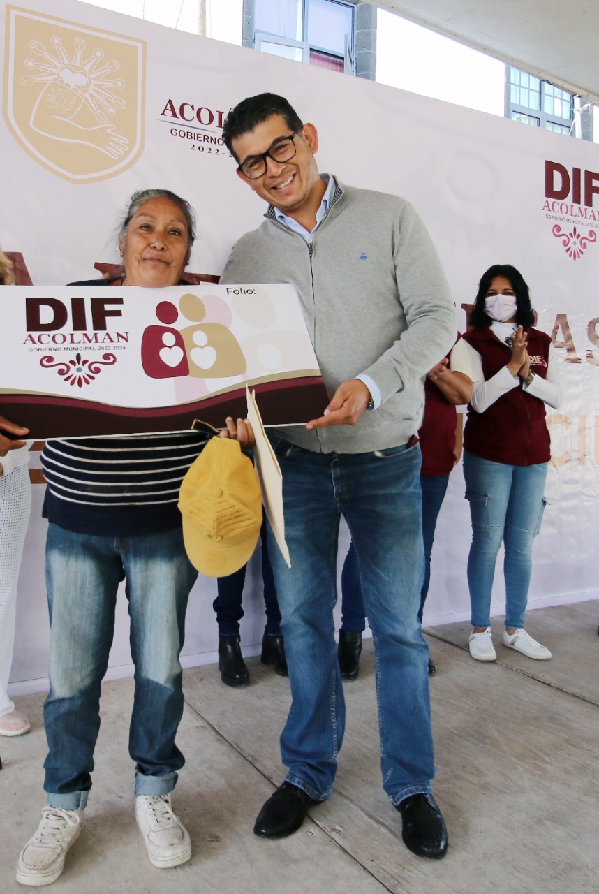 Reunidos en la explanada municipal, el presidente honorario del Sistema Municipal DIF argumentó la intención de “transformar la calidad de vida de los Acolmenses” con estas tarjetas.