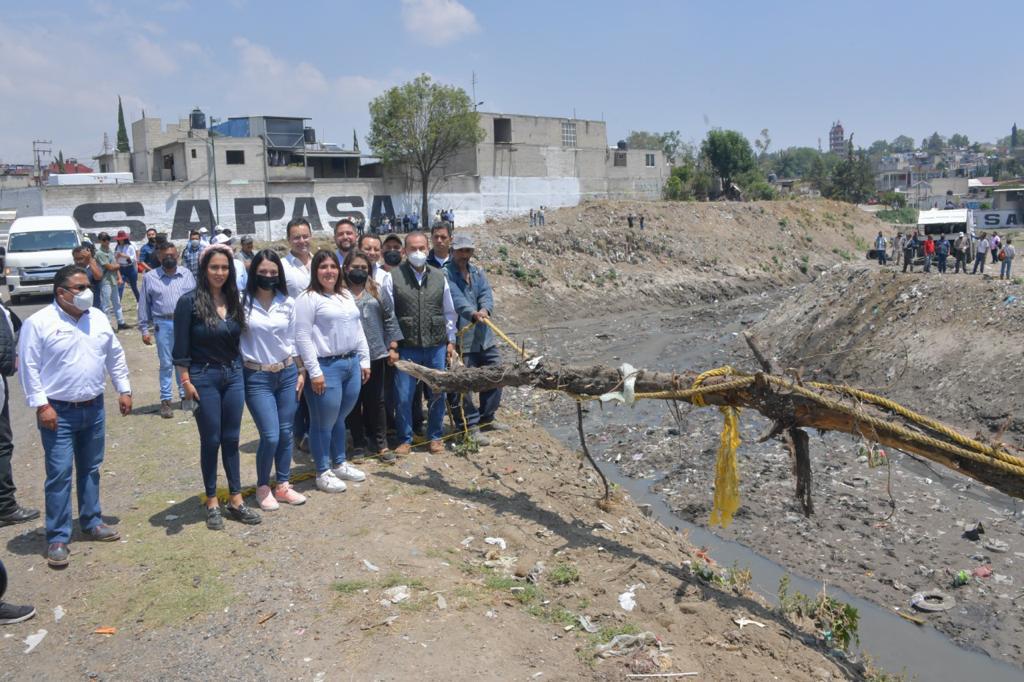 Acompañado del Director General de SAPASA, Alfredo Vázquez González, el cuerpo Edilicio y diferentes Directores de la Administración, el Alcalde destacó que con estos trabajos se busca reducir posibles afectaciones al patrimonio de los atizapenses.